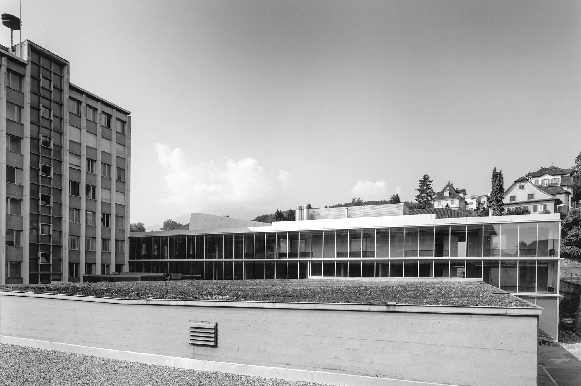 The louvers of coated glass provide optimal protection from sun and weather for the renovated facade, windows and guardrails. Air circulation occurs naturally in the interstitial space and regulates the room temperature. Overall the renovated facade underligns the need for safety and privacy.