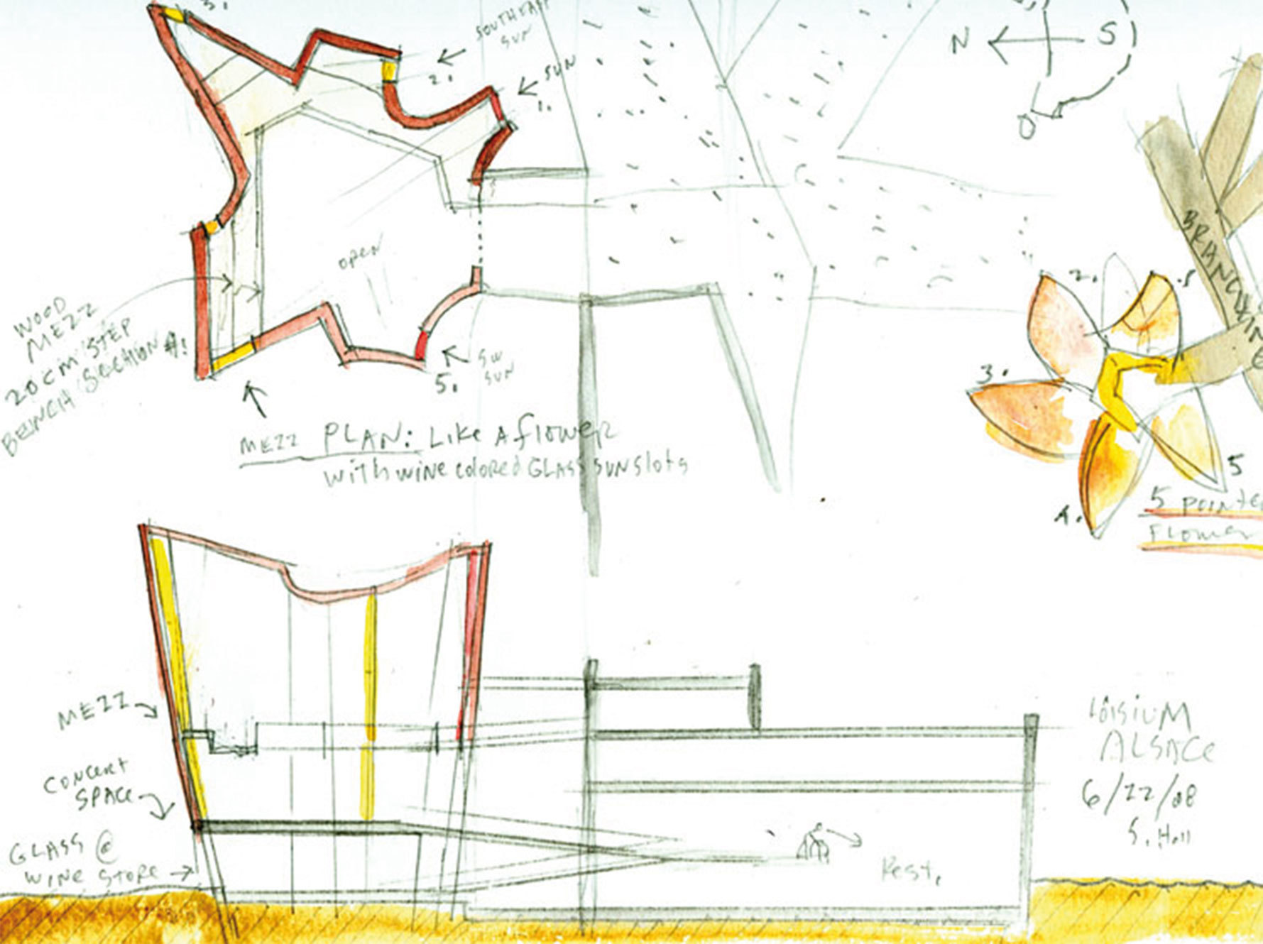 Read MoreThe red cliff from the former stone quarry on the site provides a unique background for the building, while an ancient road, crosseing the site from the historical Marbach Abbey, was once part of the pilgrim path to Santiago de Compostela.