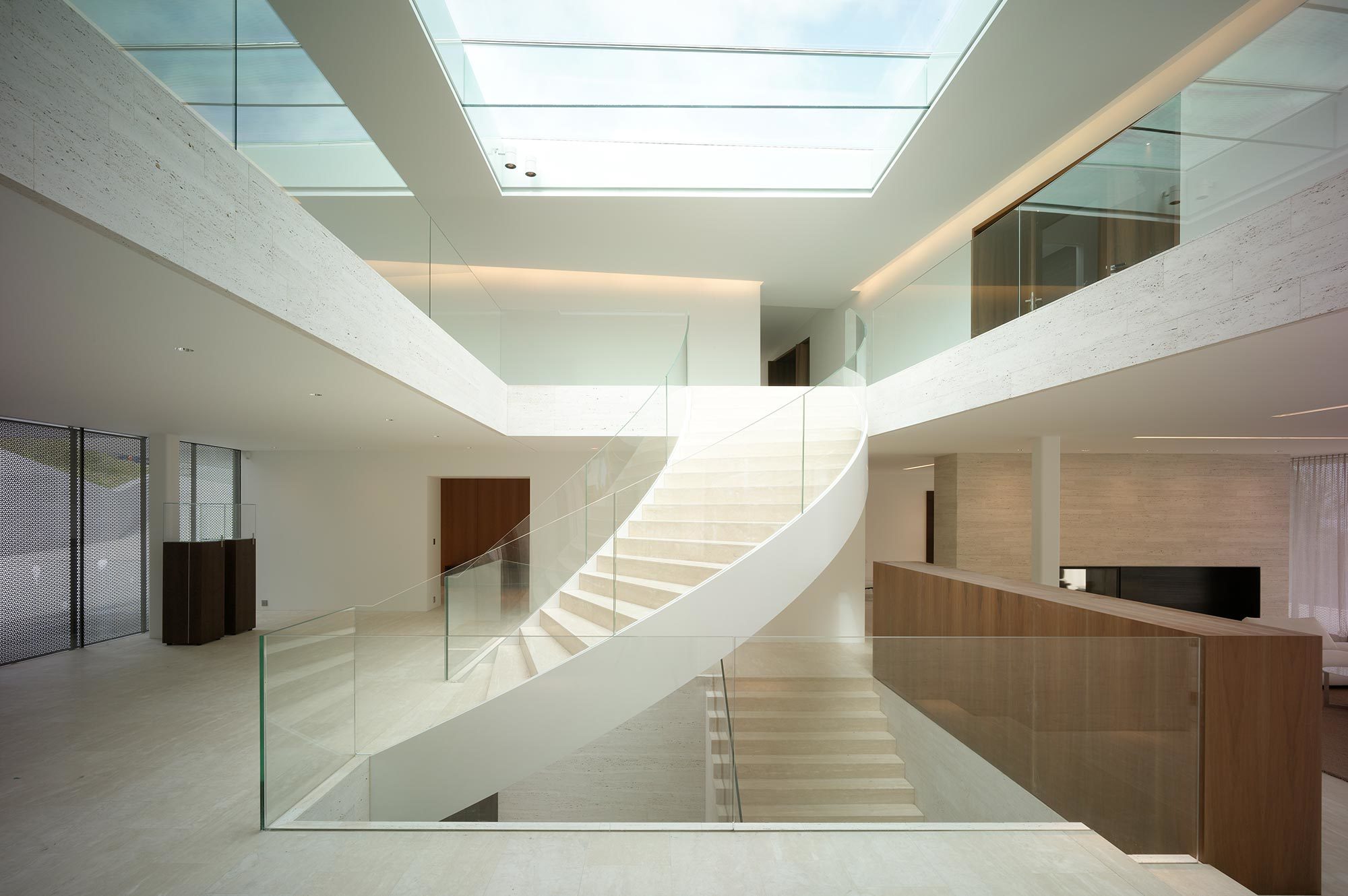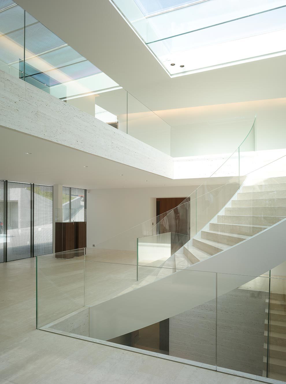 A central skylight provides sunlight and daylight to the spacious and open staircase and the core of the house.