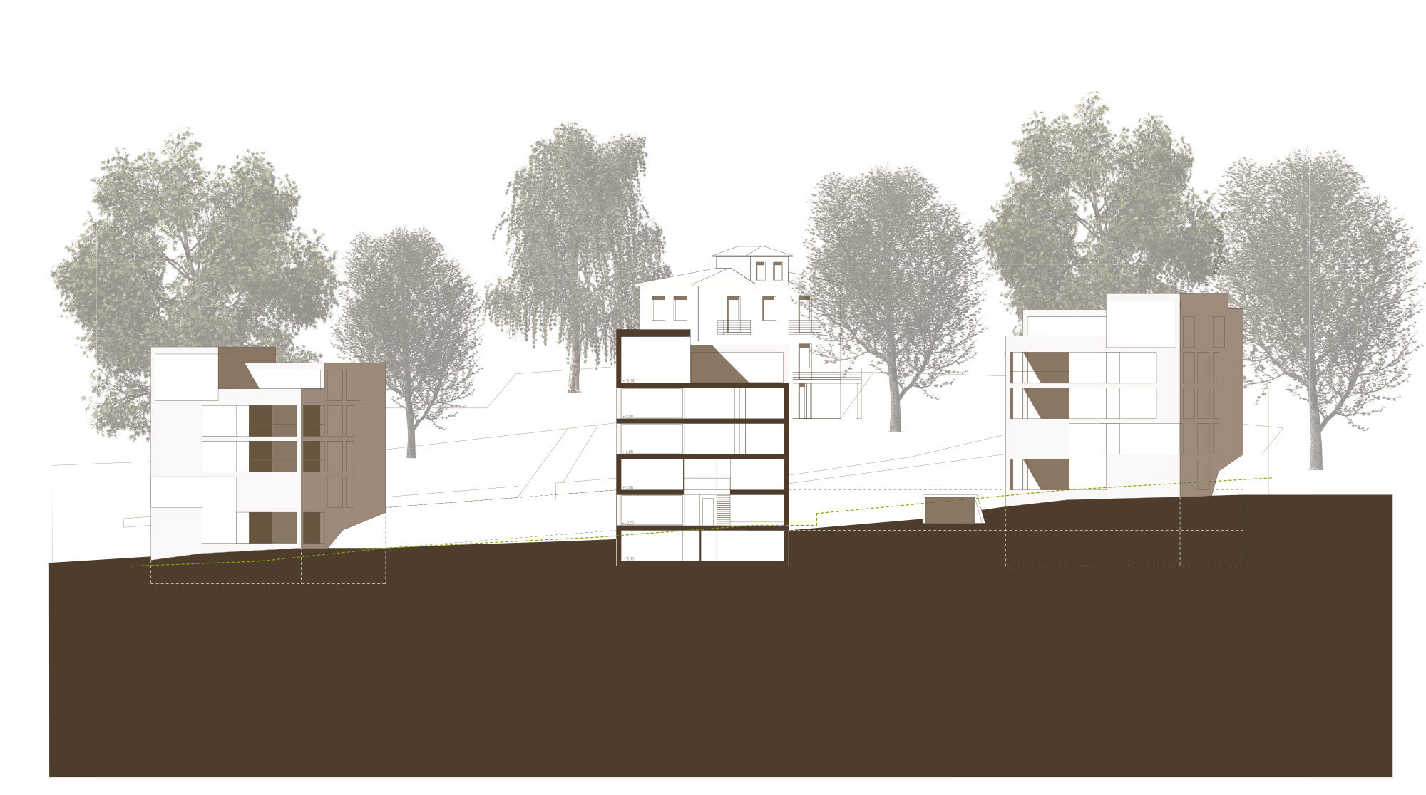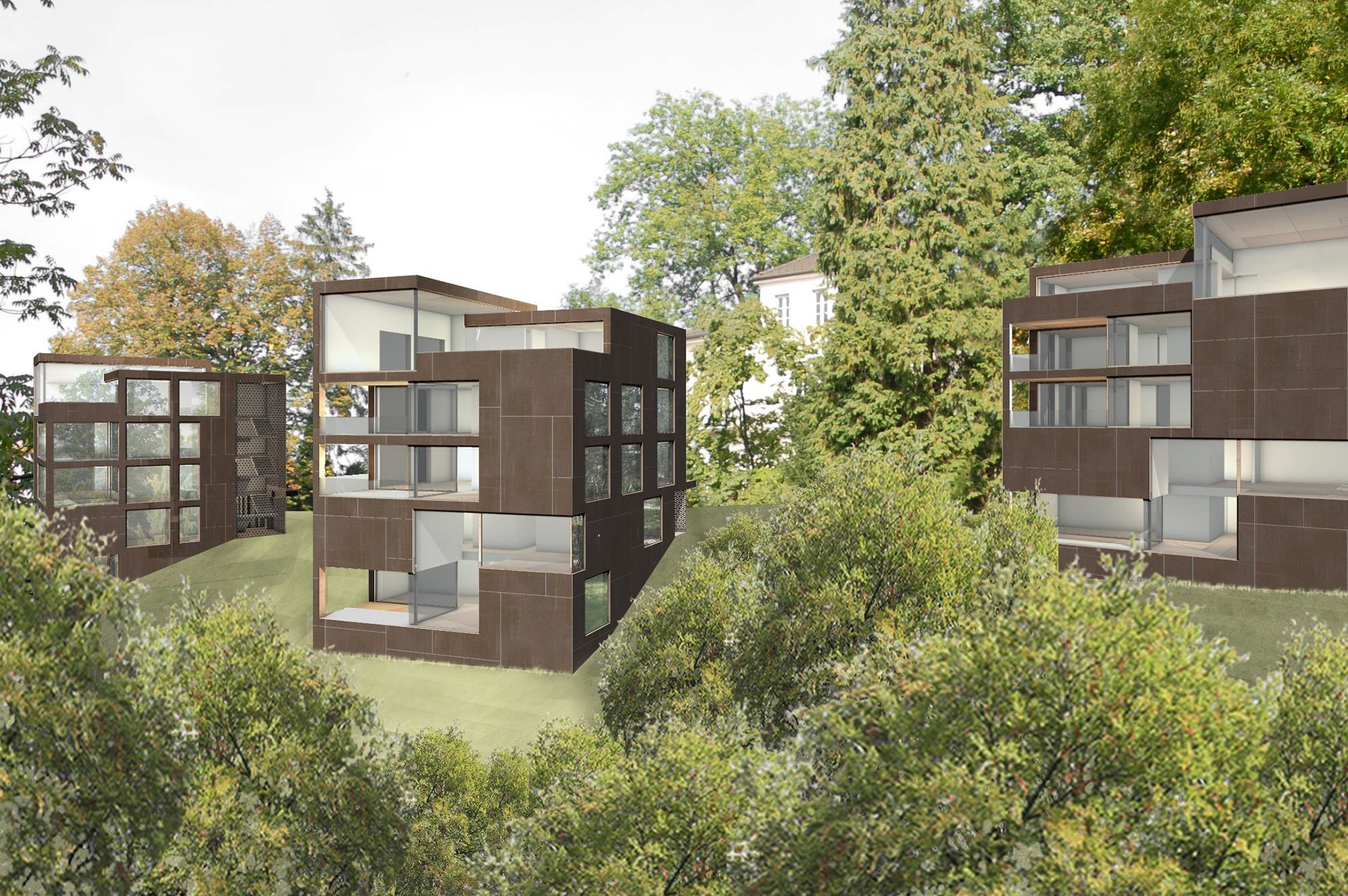 Mehr lesenDas Bebauungskonzept sieht drei fünfgeschossige, kompakte Baukörper vor, die sich in Dimension und Anordnung an den umliegenden Wohnbauten orientieren. Hingegen das übergeordnete Ziel des Freiraumkonzeptes ist es, den unverändert bestehenden Parkteil und das Neubauareal als lesbare Parkeinheit zusammenzufassen.