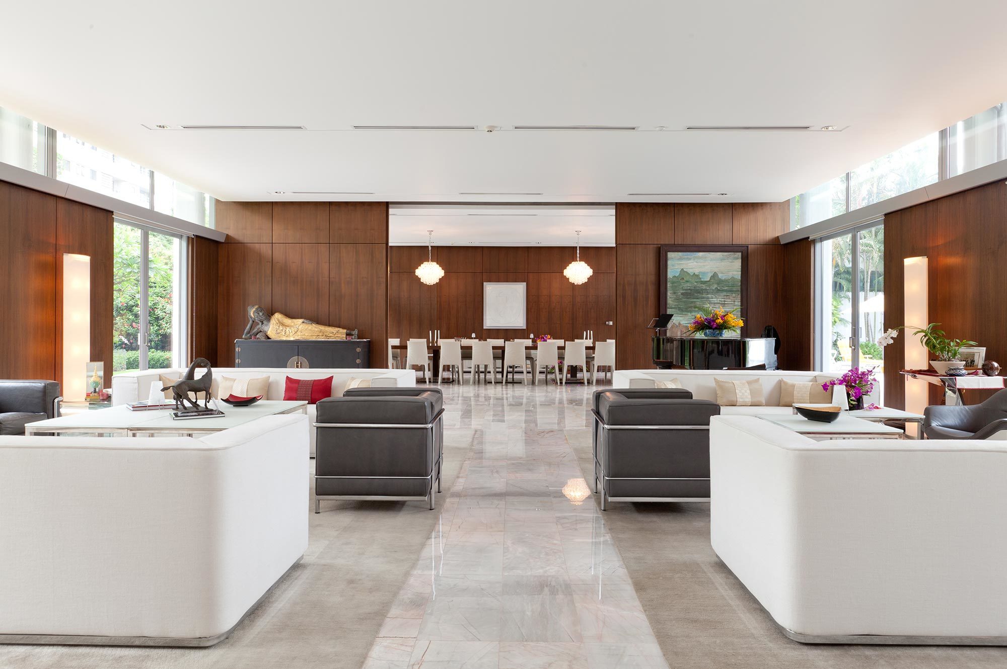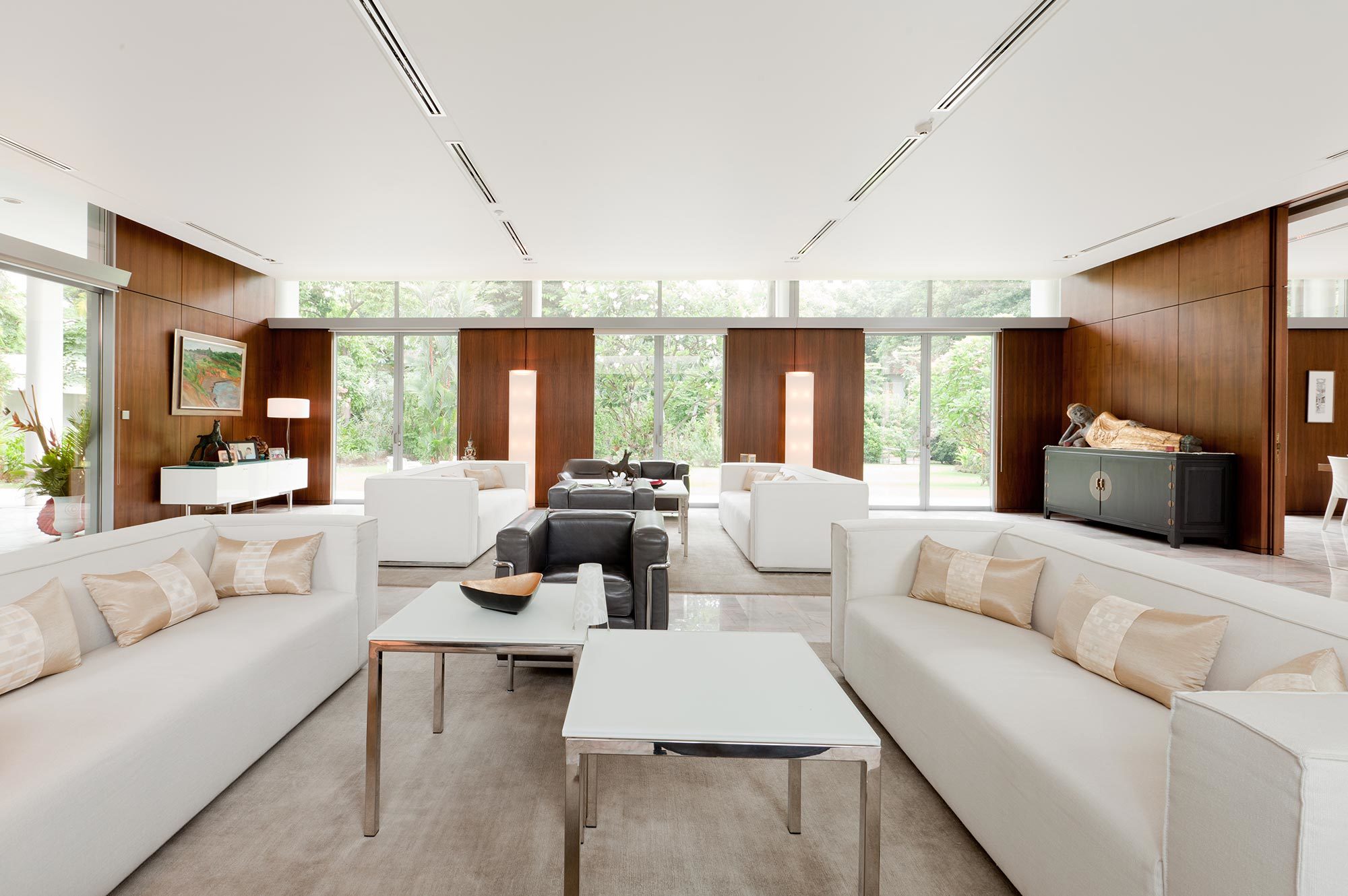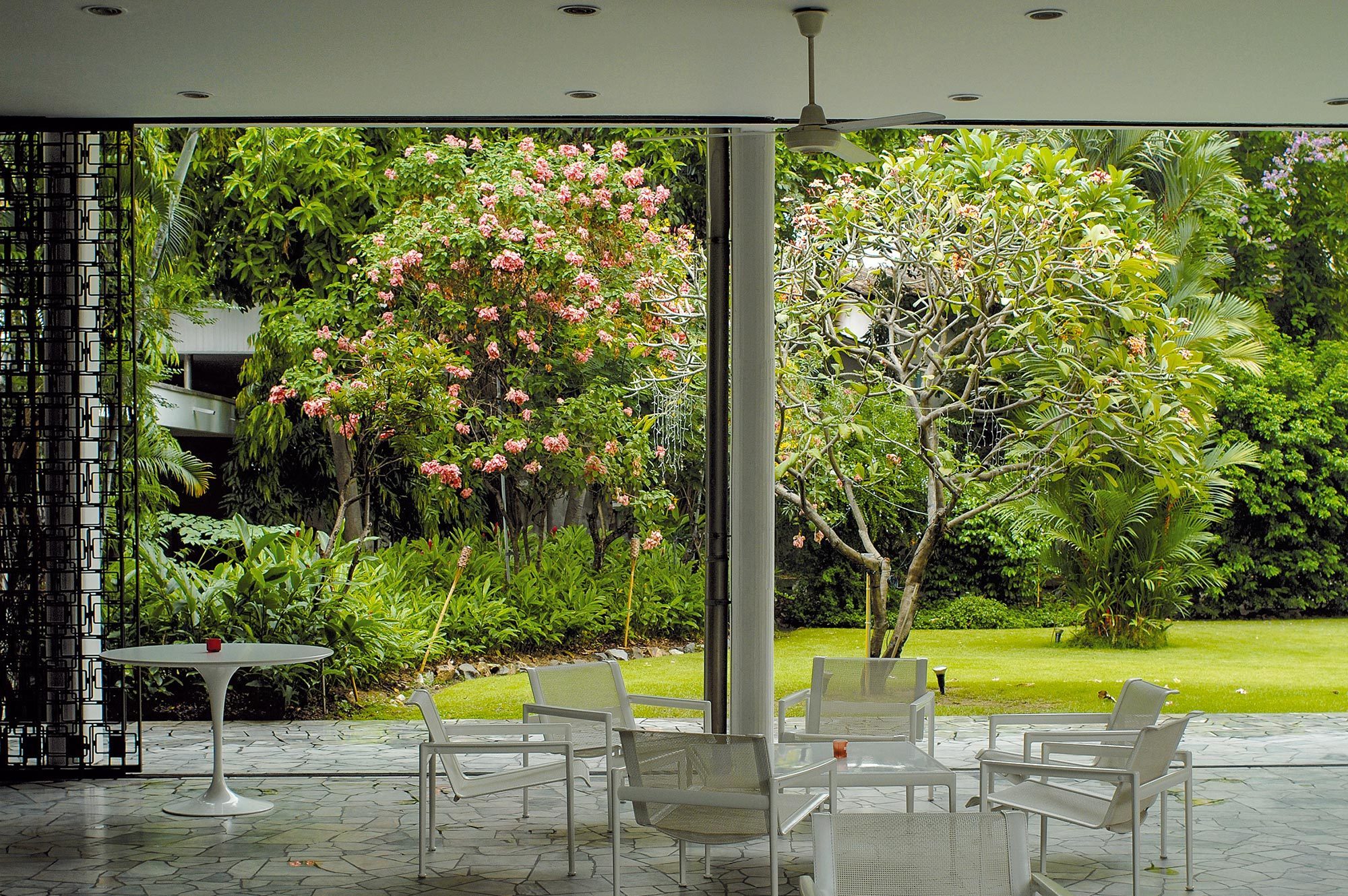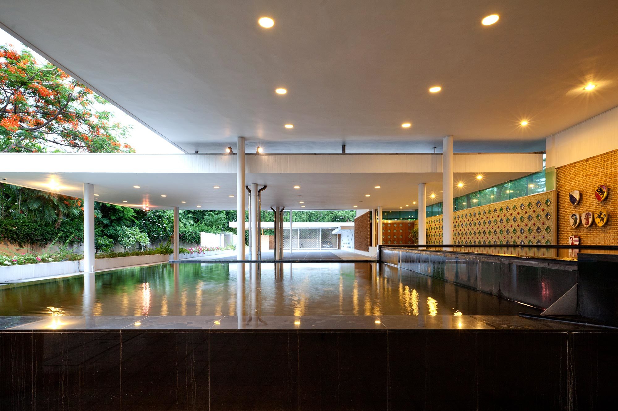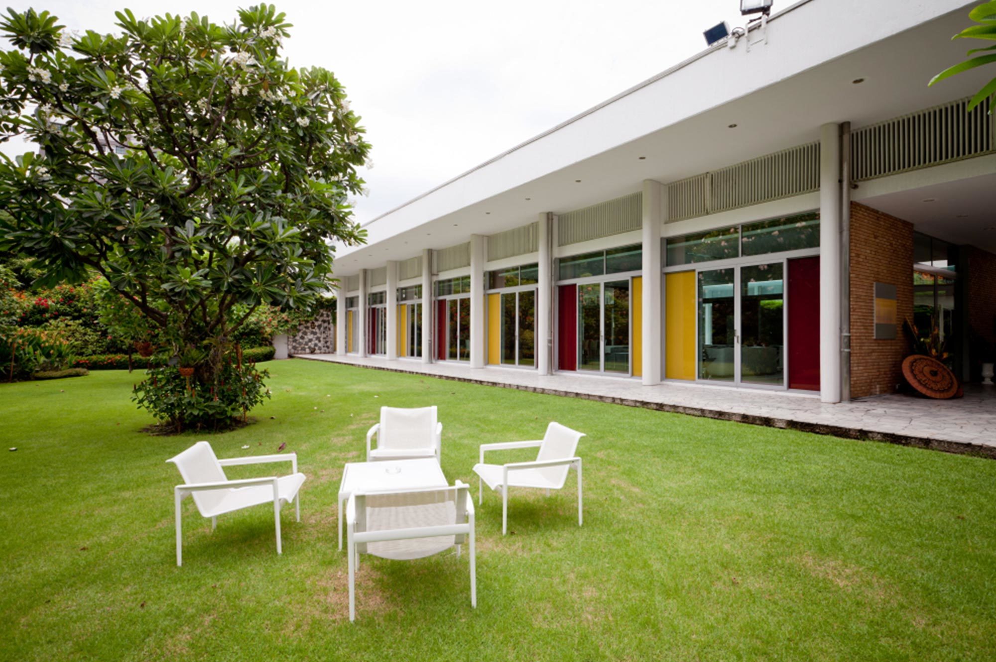 Einerseits strahlt er noch heute die Faszination der Modernen Architektur aus, andererseits sorgt die Gartenanlage mit den aufstrebenden Bäumen für Abwechslung im Hochhausquartier. Der Architekt Hans Hofmann, bekannt als Chefarchitekt der Schweizer Landesausstellung 1939 und als Professor der ETH, plante 1957 dieses ausserordentliche Gebäude für die Schweizer Botschaft in Bangkok. Leider verstarb er während der Planung und der Architekt Roland Vogel führte das Projekt zu Ende.