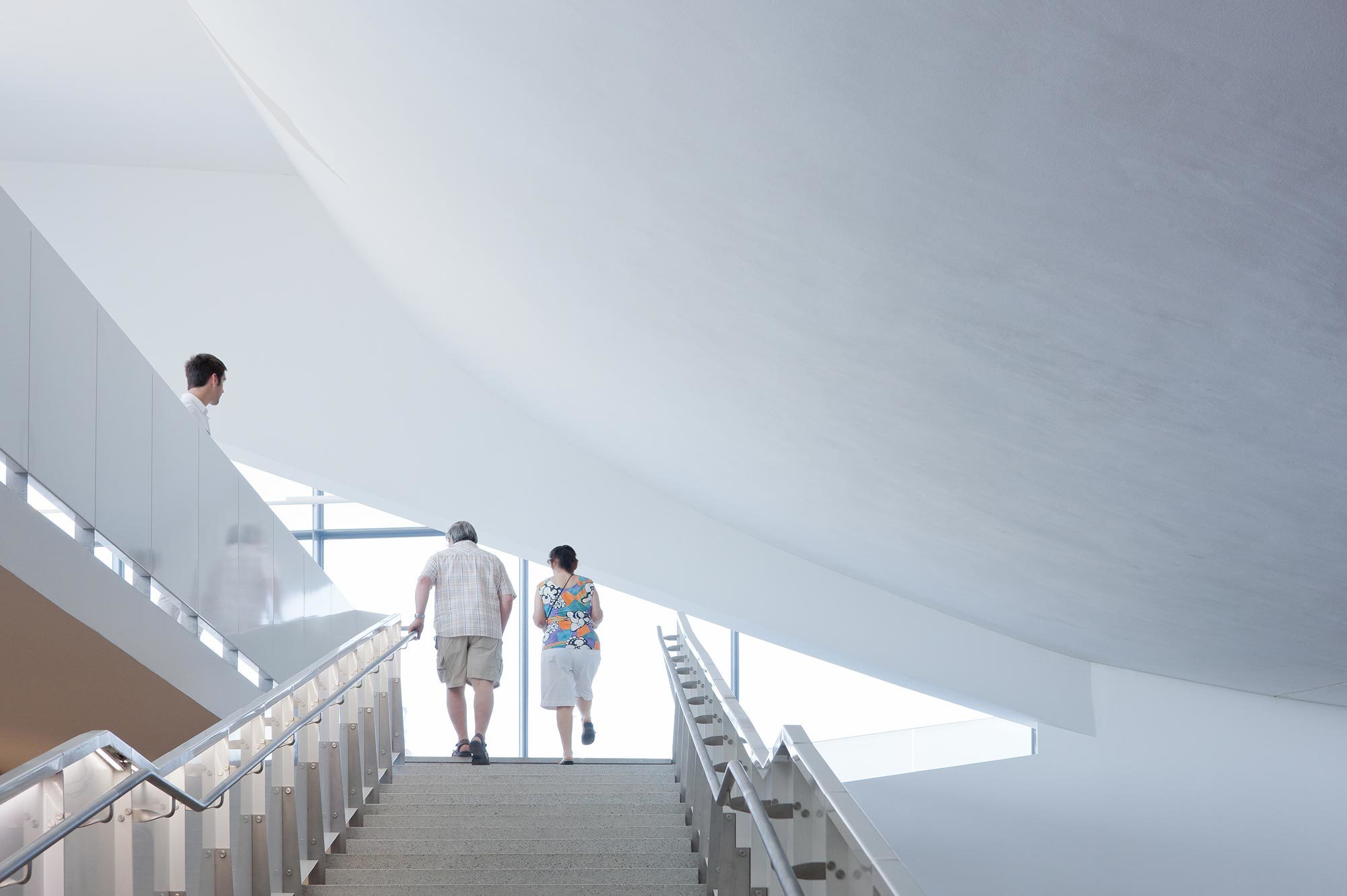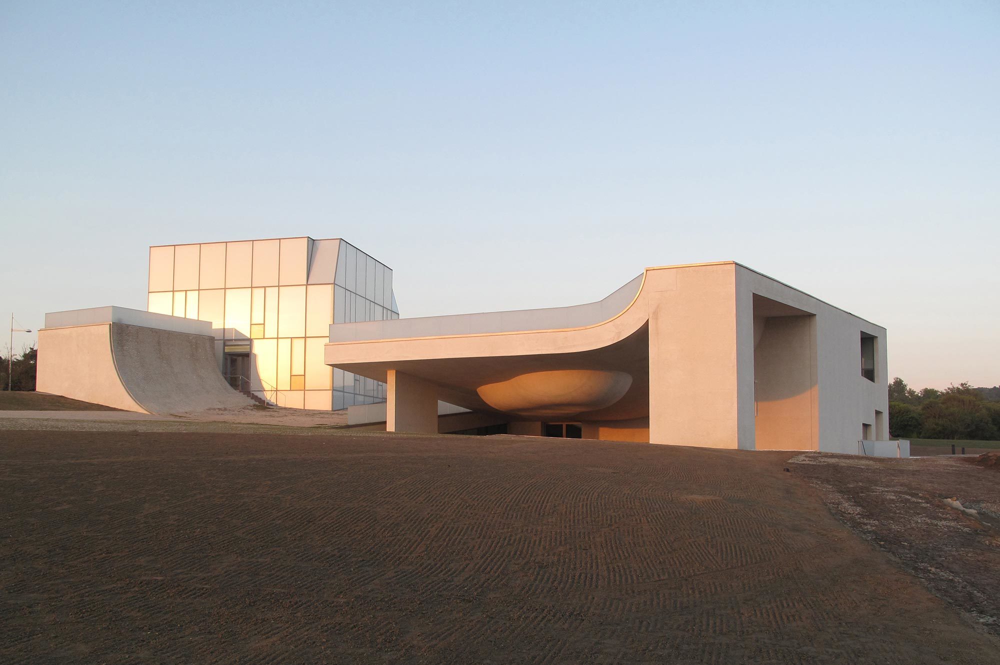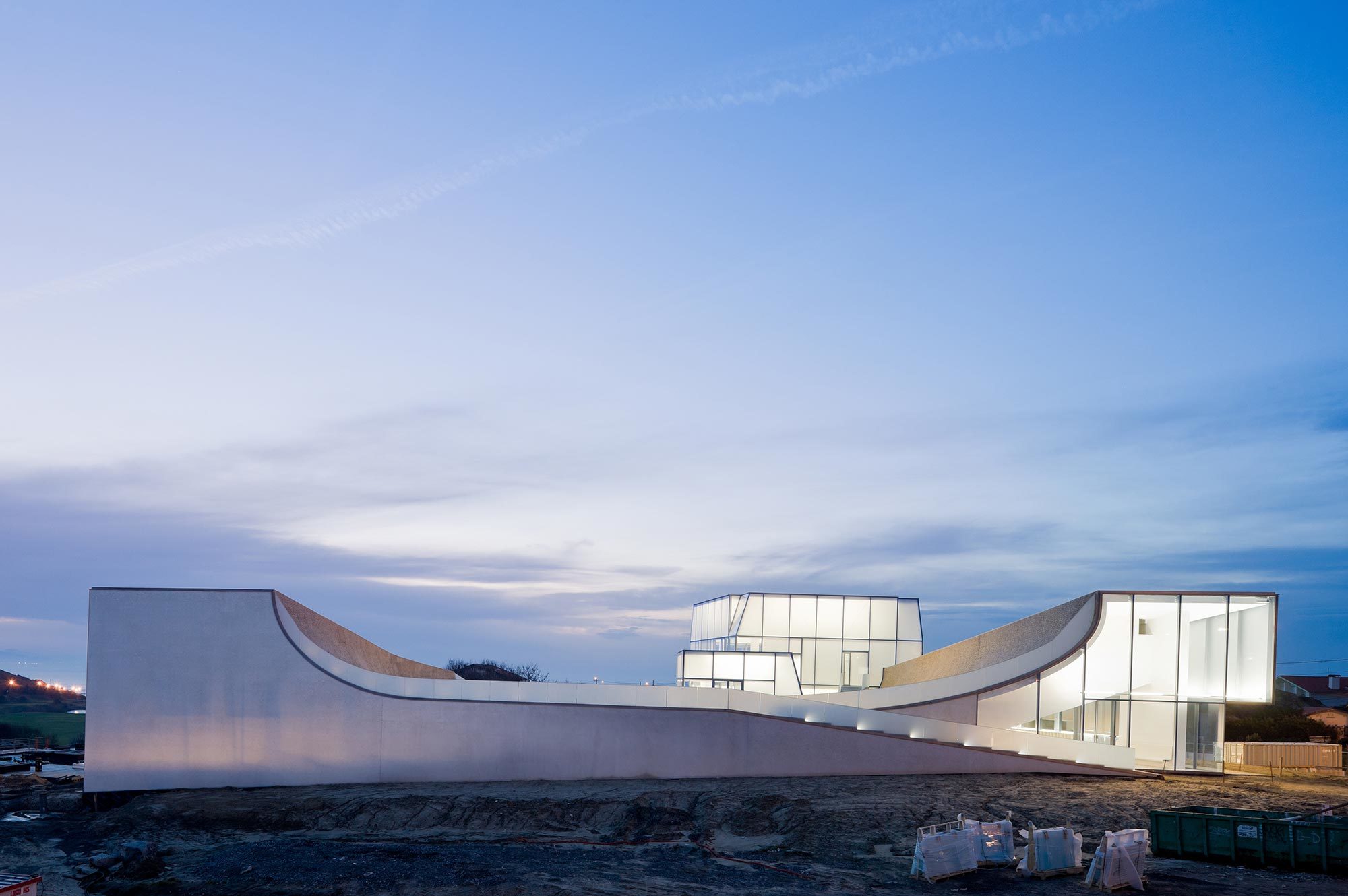 Zwei "Glasfelsen", in denen sich das Restaurant und der Surfer-Kiosk befinden, aktivieren den zentralen Platz im Aussenbereich und verbinden sich analog zu den beiden großen Felsbrocken am Strand in der Ferne. Die südwestliche Ecke des Gebäudes ist dem Treffpunkt der Surfer gewidmet, mit einem Skatepool oben und einer offenen Veranda darunter, welche die Verbindung zum Auditorium und den Ausstellungsräume im Museum ermöglicht. Dieser überdachte Bereich bietet einen geschützten Außenbereich für Interaktionen, Meetings und Veranstaltungen.