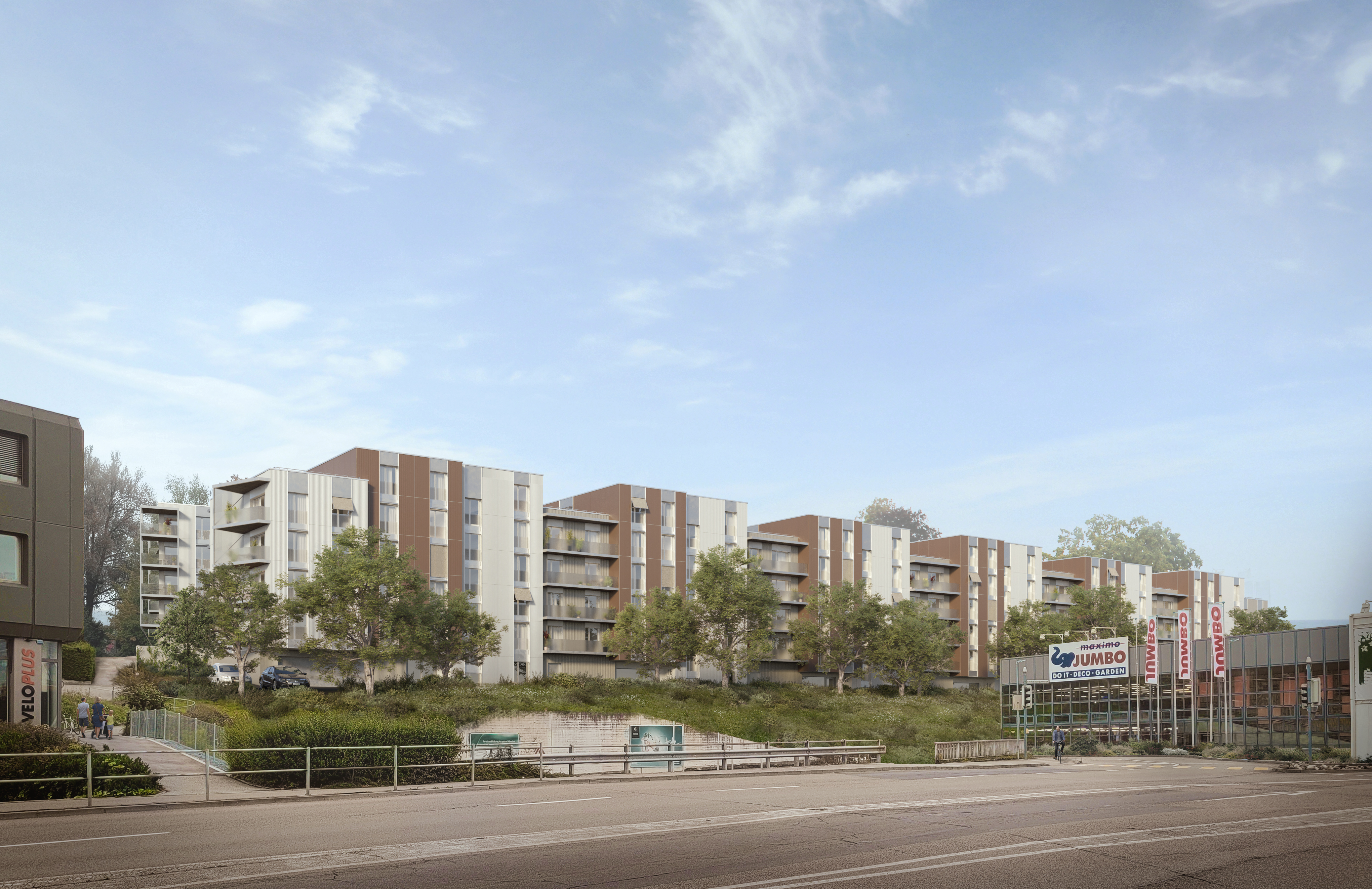Die Konzeptansätze bilden drei unterschiedliche Bautypen für insgesamt 160 Wohneinheiten. Die Überbauung Neuschwand soll Wohnraum für Familien, junge und ältere Paare sowie Singles jeden Alters bieten. Unterschiedliche Wohnformen werden sich hier in Miet- und Eigentum zusammenfinden. Im Innern der Überbauung entstehen eine attraktive Begegnungszone und eine parkähnliche Anlage. Locker angelegte Fusswege verbinden die Häuser miteinander. Die Lage ist äusserst beliebt und bestens erschlossen mit Einkaufsmöglichkeiten, Gastronomie und Schulanlagen.
